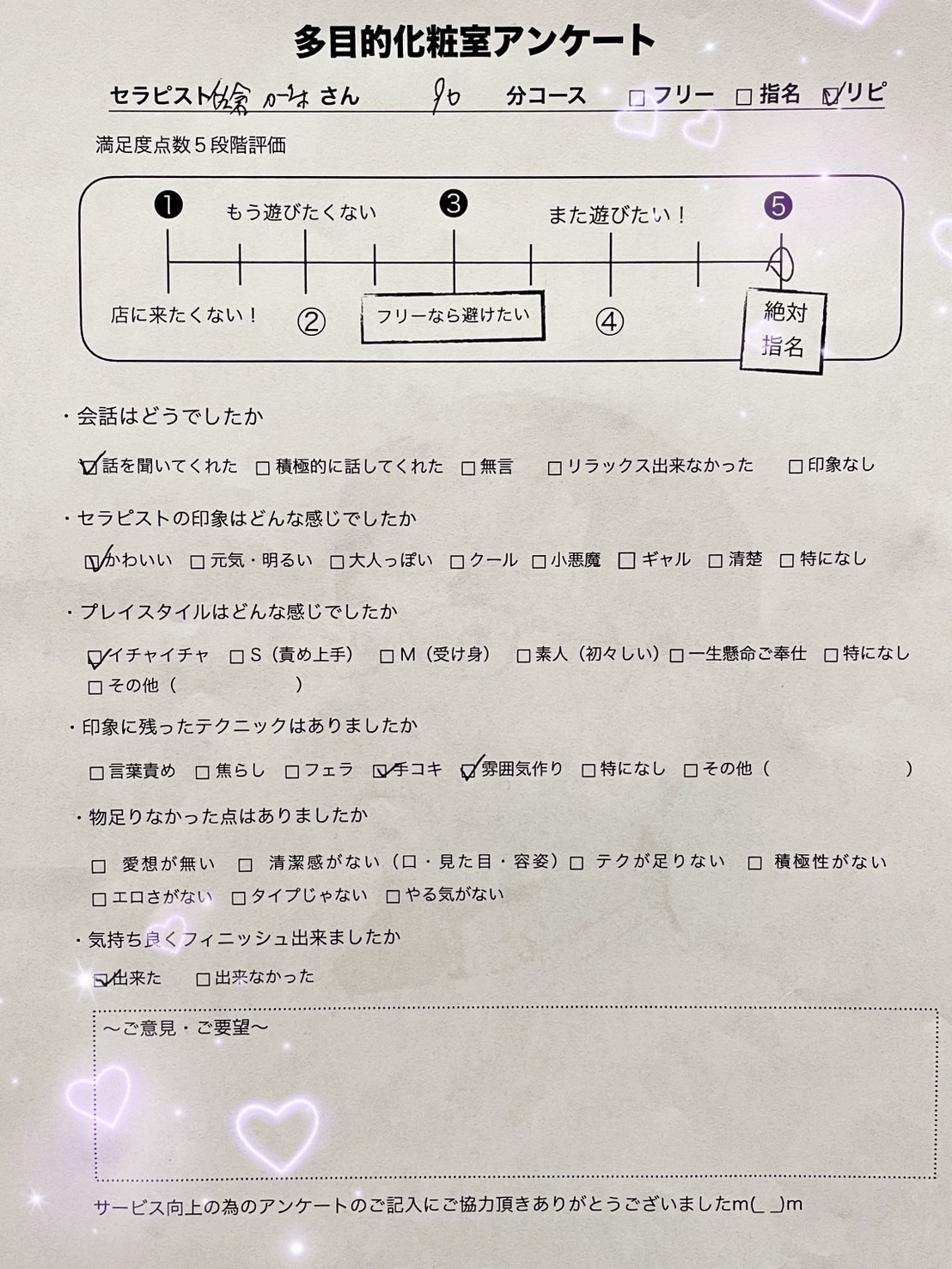 アンケートも5点満点中5点🎵